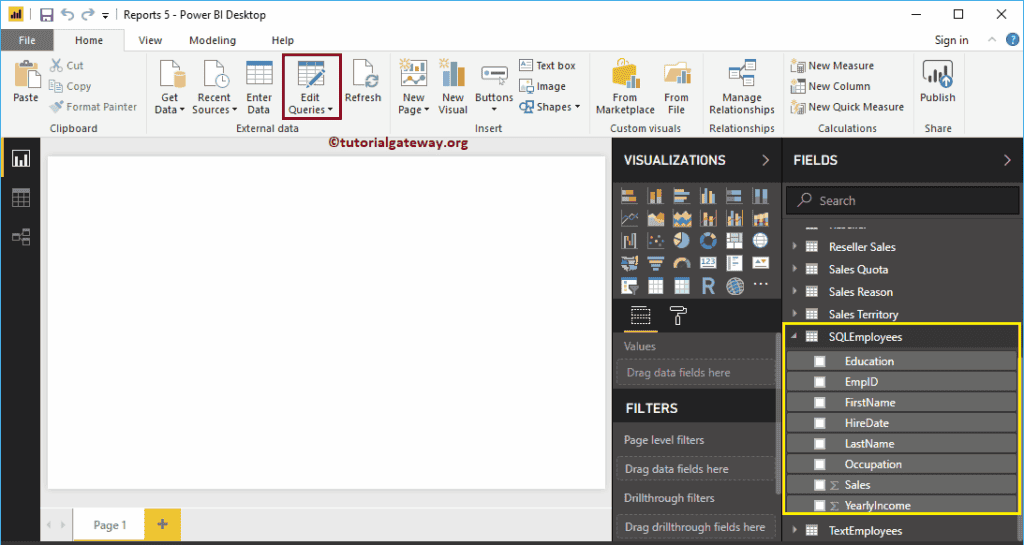 我们将使用我们在“输入数据”文章中导入的 SQL 表来演示此条件列。请在“主页”选项卡下单击“编辑查询”选项。