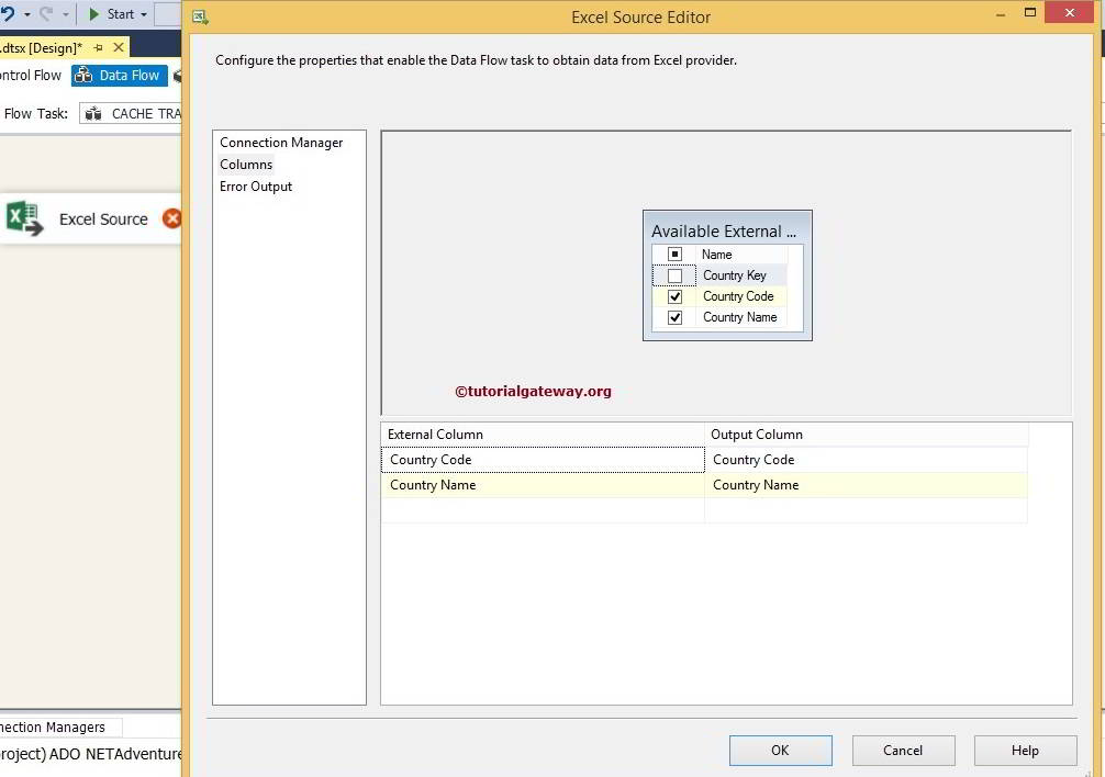 在此示例中,我们将使用 SSIS 缓存转换将 Excel 文件中的数据复制到缓存文件(.caw 扩展名)。