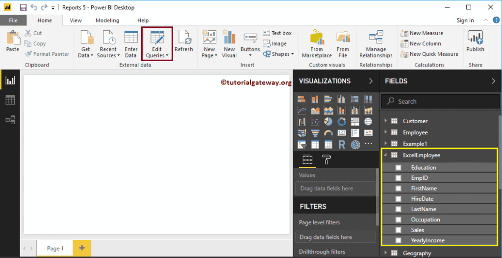 为了在桌面演示此“更改列的数据类型”,我们将使用我们在“输入数据”文章中导入的 Excel 表。要更改任何列的数据类型,请在“主页”选项卡下单击“编辑查询”选项。