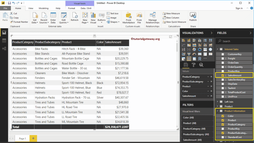 下图显示了三个表:产品类别、产品子类别和产品表。我们在“连接到 SQL”文章中导入了这些表。有关更多数据连接和转换,请单击此处 >> 单击此处!