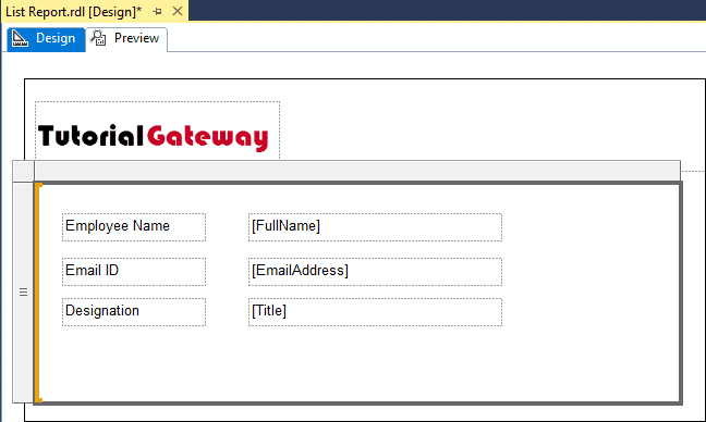 单击预览选项卡以查看 SSRS 列表报表预览。