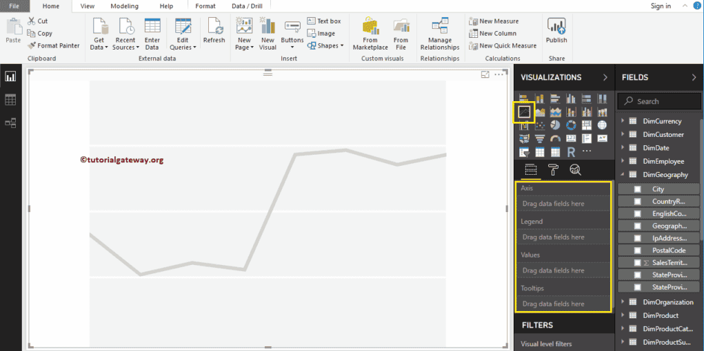 在此折线图演示中,我们将使用我们先前文章中创建的 SQL 数据源。因此,请参考 连接到 SQL Server 和 图表列表 文章,以了解 Power BI 数据源。