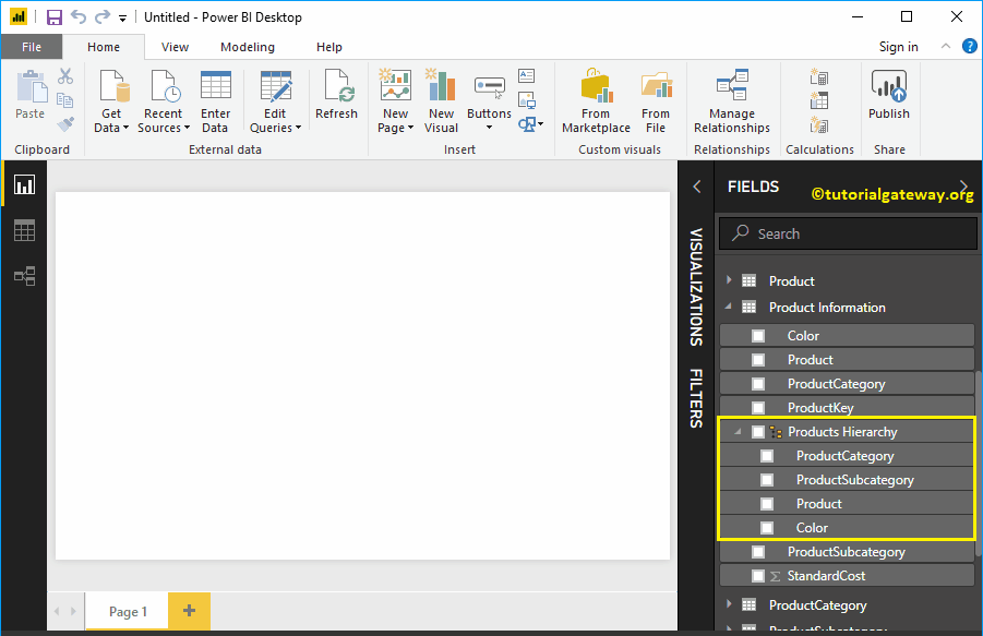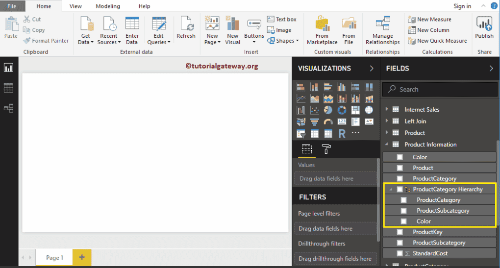 将所需的字段拖放到 Power BI 中新创建的层级结构。我将拖动颜色字段。