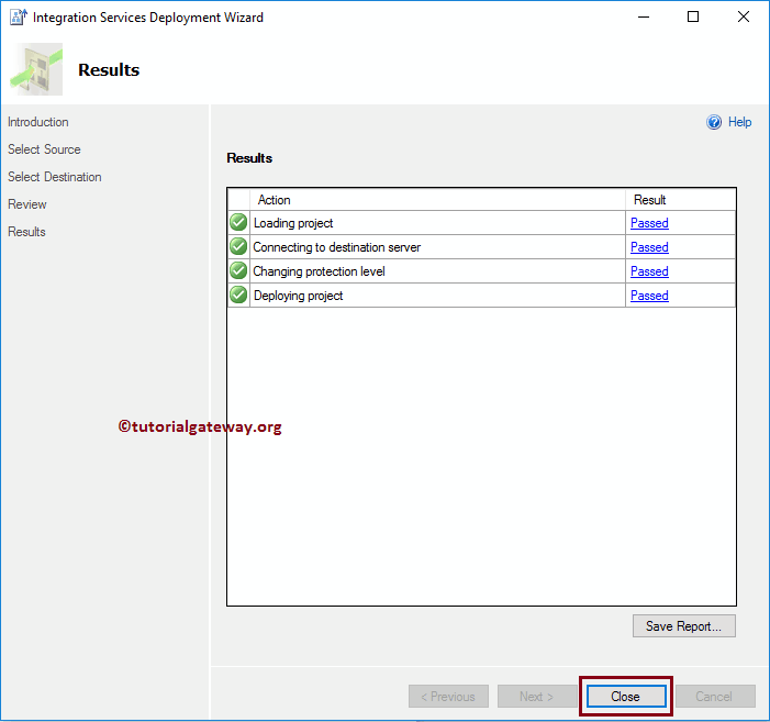 结果页面将显示结果。如您所见,我们已成功将 SSIS 包部署到 SQL Server。