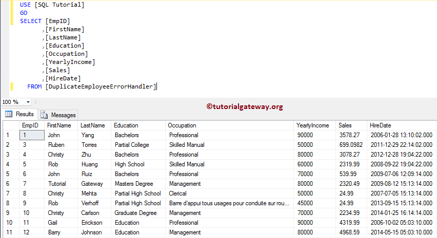 从上面的屏幕截图可以看出,EmpId 为 2、13、14 的职业长度大于 255。