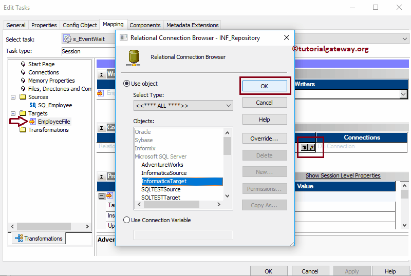 创建工作流后,我们的下一步是为我们的映射创建会话任务。