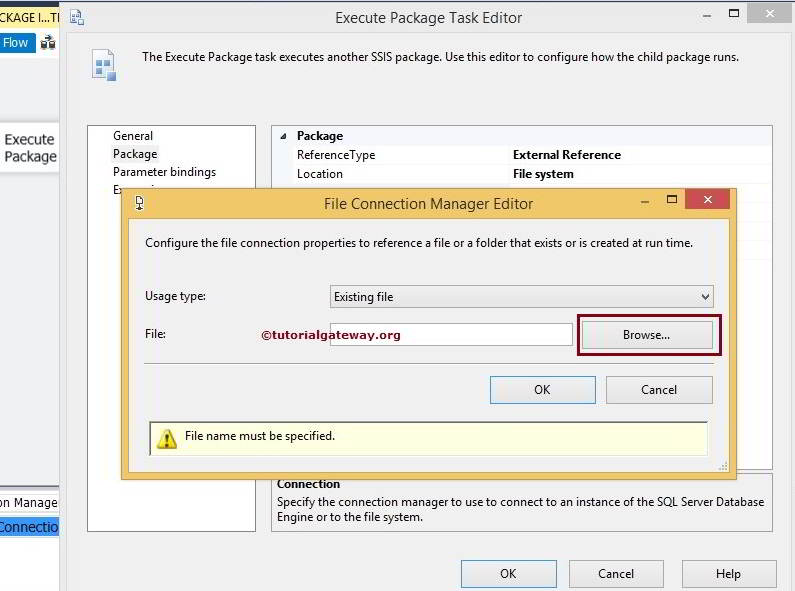 执行程序包任务允许我们将 SQL Server 或文件系统中的其他程序包作为其执行的一部分来调用。在本文中,我们将使用 SSIS 执行程序包任务来执行文件系统中的程序包。
