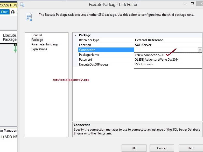 单击“确定”完成数据库选择。现在,我们必须选择要执行的包。因此,单击“包名”选项旁边的“浏览”按钮 (…)。