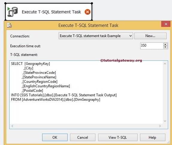 以下是 SSIS“执行 T-SQL 语句任务”的连接属性: