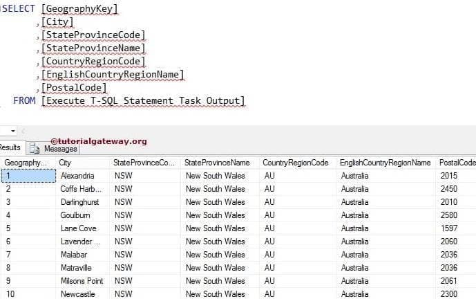 在此示例中,我们将解释“执行 T-SQL 语句任务”的功能。在此演示中,我们将创建一个新表并将以下数据插入到新创建的表中。