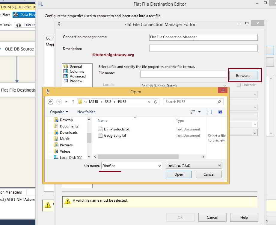 在本文中,我们将向您展示在SSIS中将SQL Server数据导出到平面文件的分步方法。为此,我们将创建一个包,从数据库中选择数据,然后将这些数据发送到本地硬盘上的文本文件中。