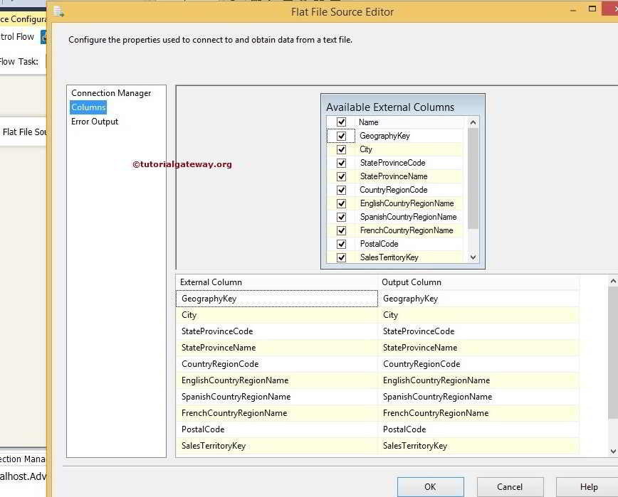 从上面的屏幕截图,您可以观察到我们选择了已创建的连接管理器。单击预览按钮可查看文本文件中的数据。