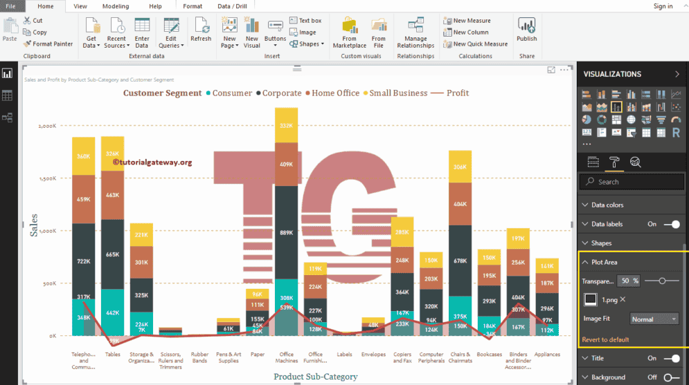 使用此绘图区域属性,您可以将自定义图像添加为折线和堆积组合图的背景。为了演示,我们在绘图区域背景中添加了一个图像。