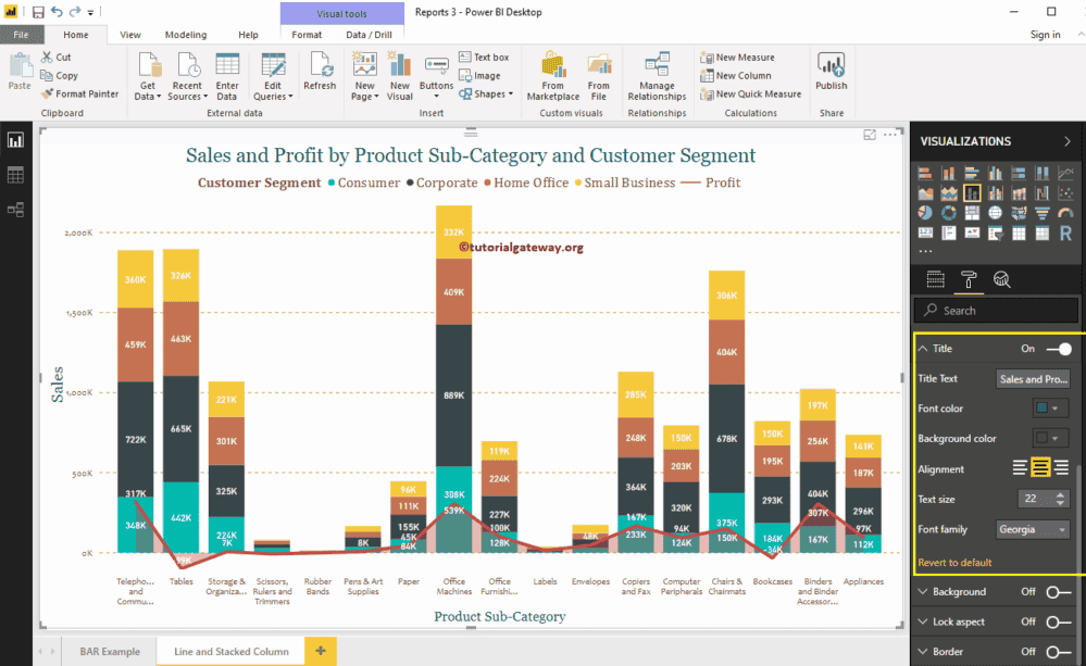 如何使用示例格式化 Power BI 折线和堆积组合图?格式化 Power BI 折线和堆积组合图包括更改折线笔触、堆积柱颜色、标题位置、轴详细信息等。