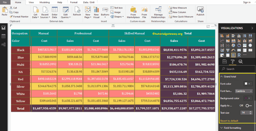 如何通过示例格式化 Power BI 矩阵报表?格式化矩阵包括更改矩阵网格颜色、行格式、列格式、行和列颜色、矩阵标题文本、背景颜色等。