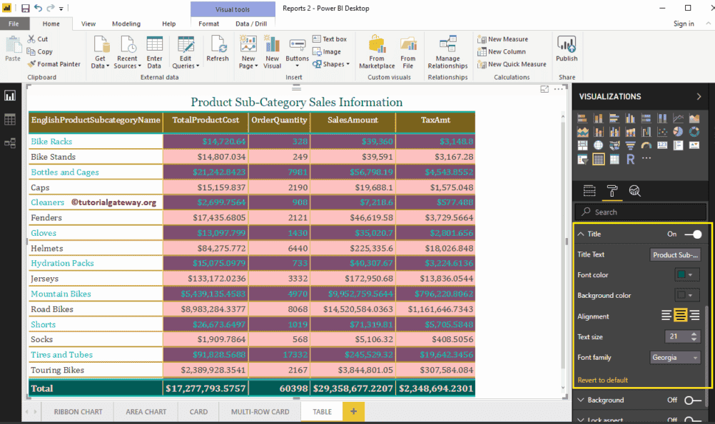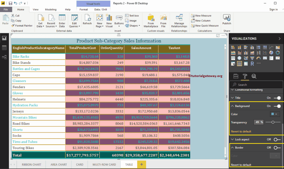 如何格式化 带有示例的表格报表?Power BI 格式表格包括更改表格网格颜色、行颜色、列格式、行格式、表格标题文本和背景颜色等。