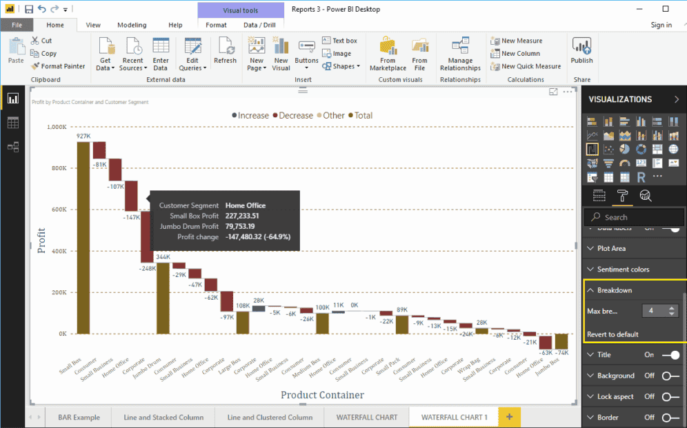 格式化 Power BI 瀑布图细分