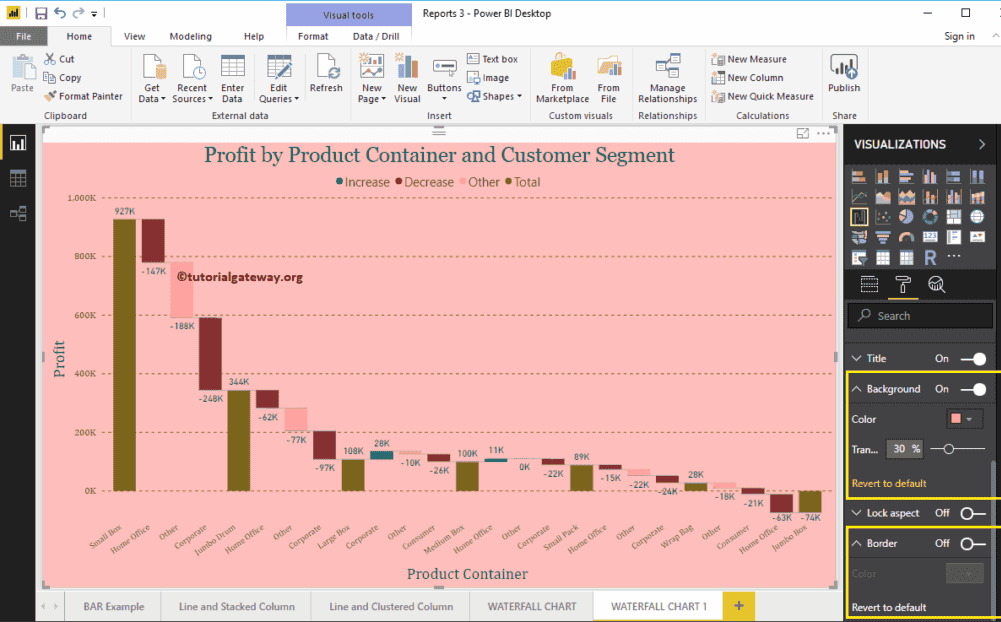 格式化 Power BI 瀑布图背景颜色和边框