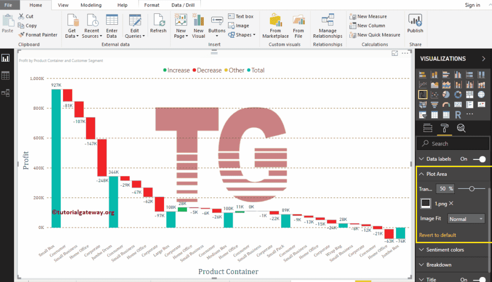 使用此“绘图区域”属性,您可以添加自定义图像作为瀑布图的背景。为演示起见,我们添加了一张图片作为绘图区域背景。