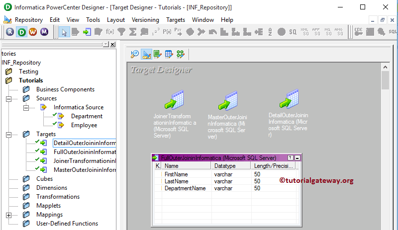 步骤 2:在目标定义中创建 Informatica 全外连接