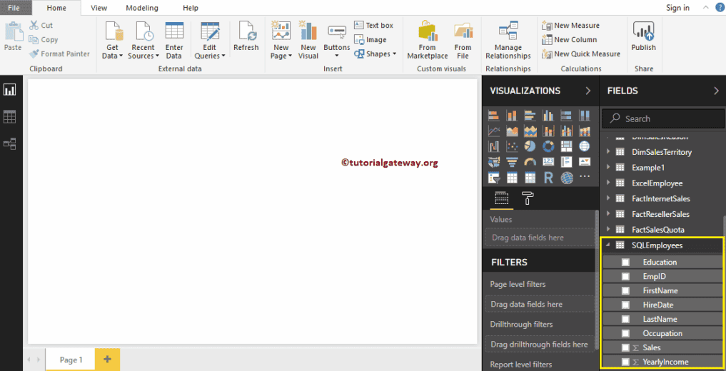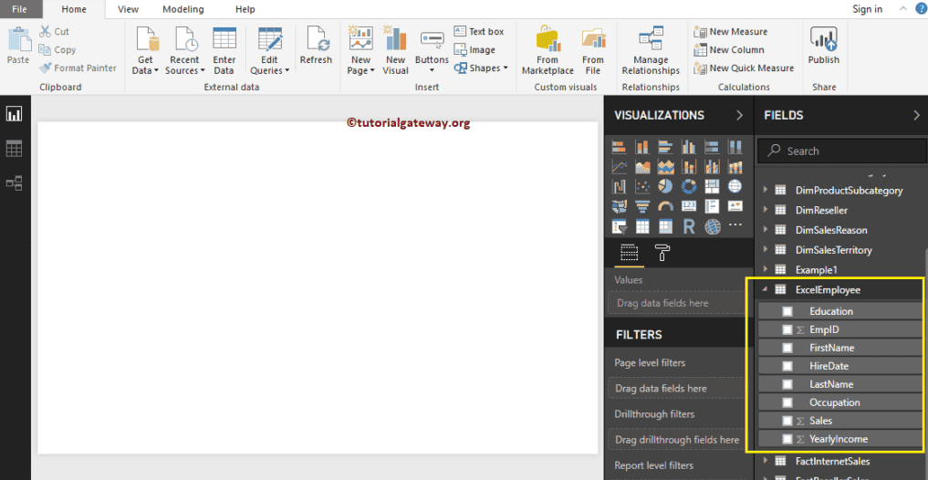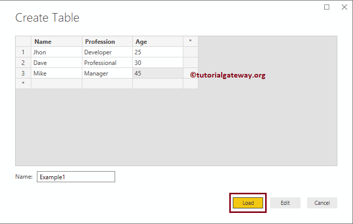 接下来,单击“加载”按钮将此表加载到 Power BI desktop。您也可以单击“编辑”按钮来编辑这些字段。