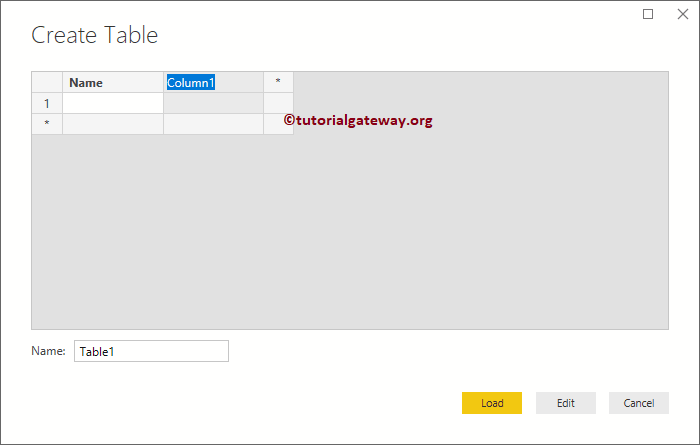单击“输入数据”选项会打开一个名为“创建表”的新窗口。在这里,您可以创建新列并添加新行。选择“列 1”标题可以重命名它。
