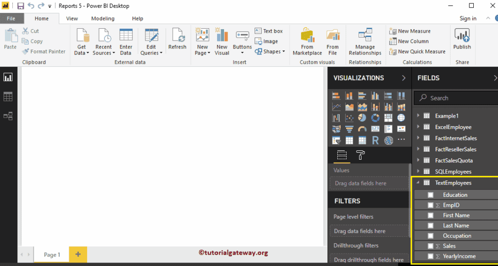 让我们通过一个例子来看看如何在 Power BI Desktop 中重命名列名。通常,当您从数据源加载数据时,会得到数据源中可用的列名。在设计报表时,您可能需要更有意义的名称。在这些情况下,您可以使用重命名列名选项。