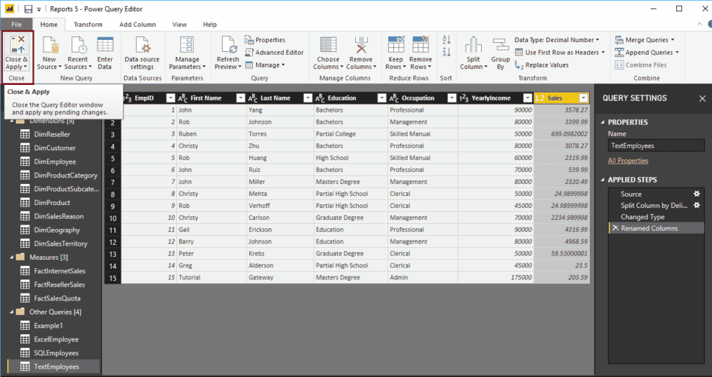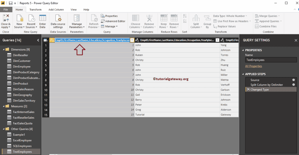 为了演示此重命名列名选项,我们将使用我们在输入数据中导入并在拆分列文章中修改过的文本员工表。