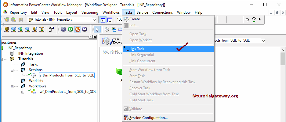 本文将向您展示如何通过示例手动创建Informatica工作流。要创建工作流,我们需要任务(会话或电子邮件)。在本示例中,我们将使用已创建的会话任务。