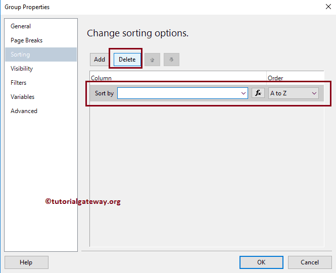然后导航到“排序”选项卡。请通过单击“删除”按钮删除排序的列