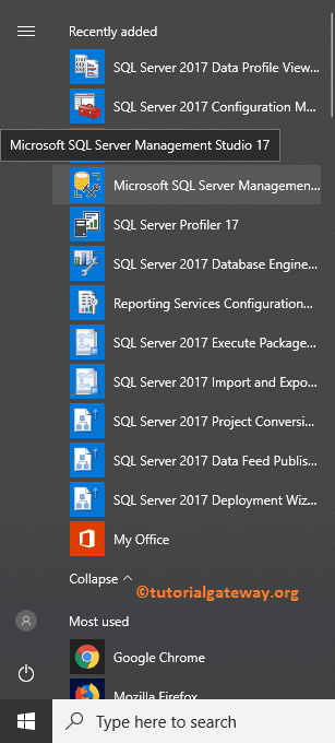 让我检查一下我们是否成功安装了 SSMS。从下面的屏幕截图中,您可以在最近添加的程序中看到 SSMS。