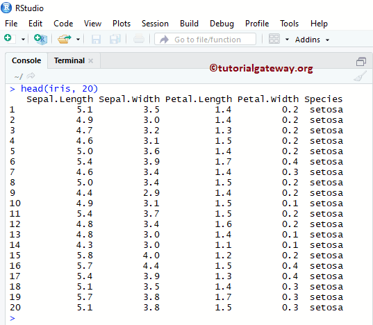 在开始示例之前,让我们看一下我们将用于此Lattice直方图示例的数据。iris是Studio提供的数据集。