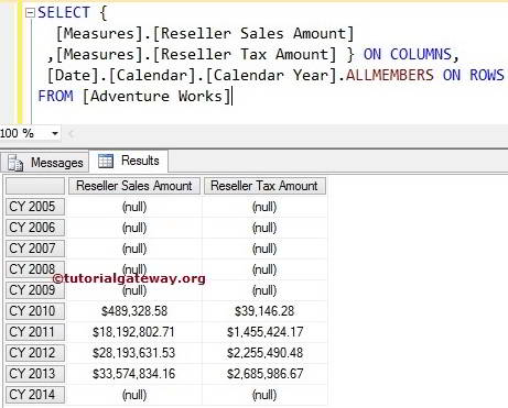 [Measures].[Internet Sales Amount] ON COLUMNS,