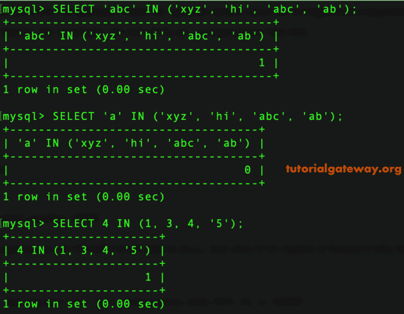SELECT 3 IN (1, 2, 3, 4, 5);