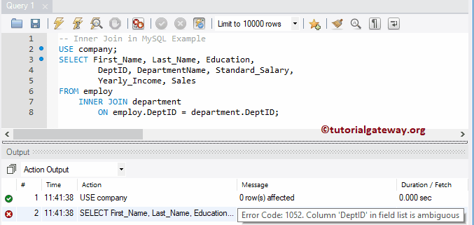 注意:在连接中使用表名而不是列名始终是最佳实践(避免混淆)。例如,SELECT employ.First_Name