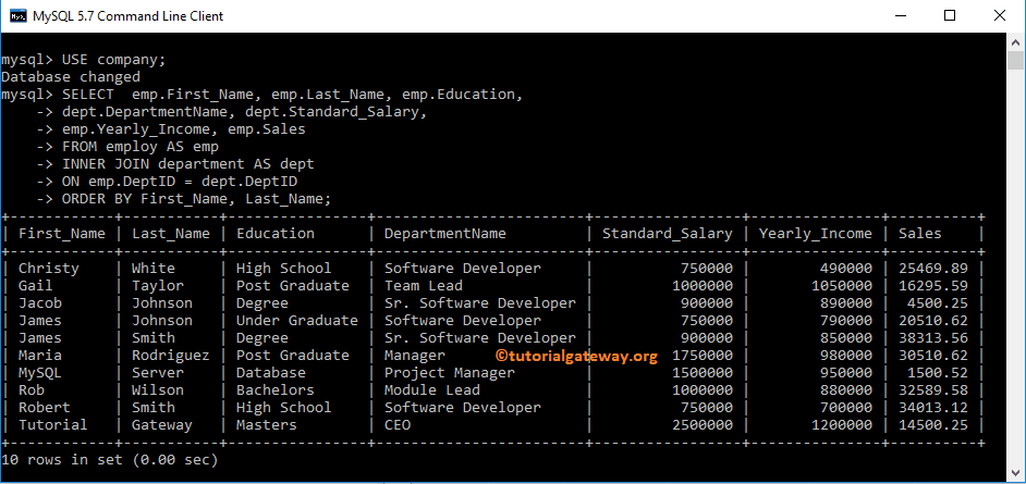 我来向你展示如何在命令提示符下编写查询。在此示例中,我们展示了如何使用 ORDER BY 子句来排序数据。我建议你参考“Order By”文章。