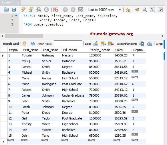 正如我们之前所说,请将所需的列放在 SELECT 语句之后,以避免显示不必要的列。