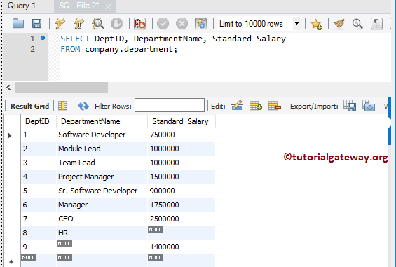 以下查询在列名前使用了表名别名。通过这种方法,我们可以告知服务器我们正在查找属于 Department 表的 DepID。我们可以简单地将上面的查询写成