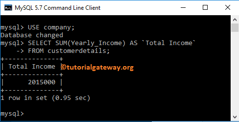 此函数返回指定列中所有记录的总和。例如,以下查询计算 customer details 表中 Yearly_Income 列的记录总数。