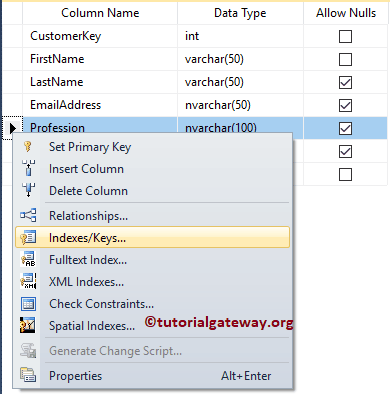 它允许您为每个表创建多个非聚集索引。在此示例中,我们正在向“专业”列添加一个,向“年收入”列添加另一个。