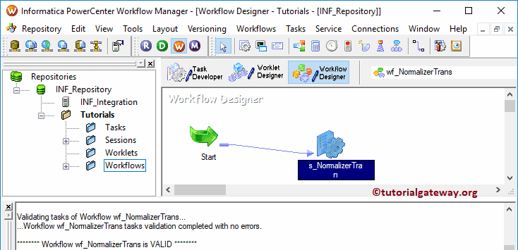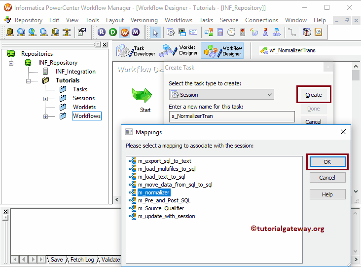 创建 Normalizer 转换的工作流后,我们的下一步是为我们的映射创建会话任务。