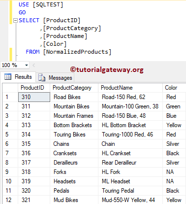 让我们打开 SQL Server Management Studio 来检查我们是否成功规范化了数据。首先,查看 products 表