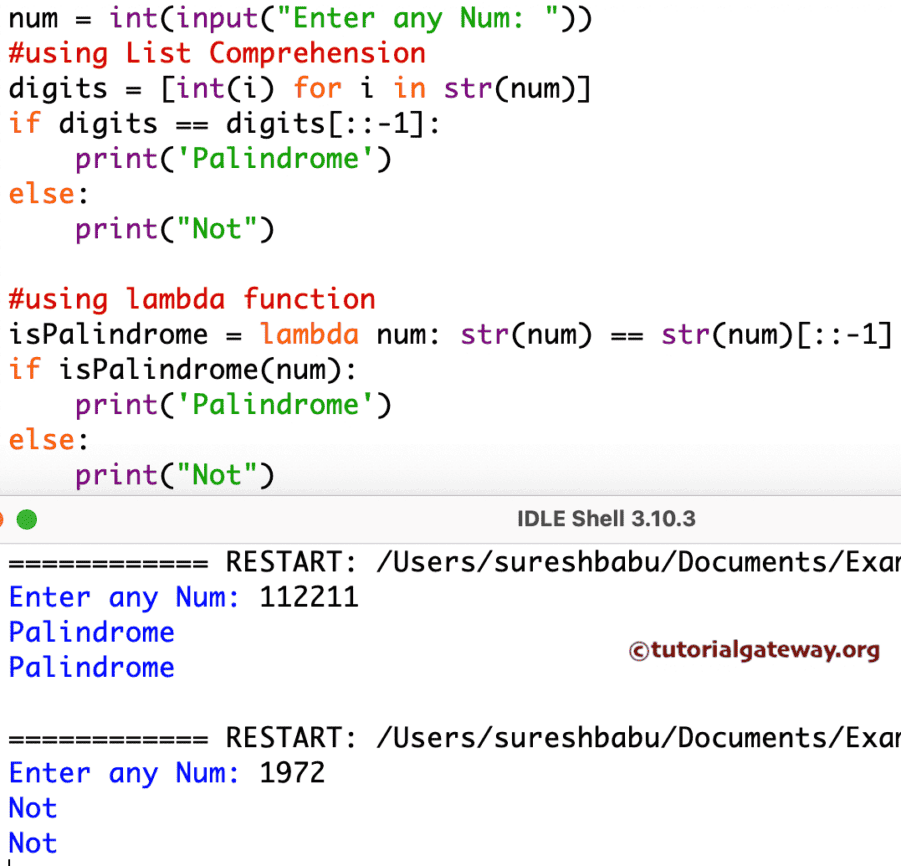 使用 lambda 函数的 Python 回文数检查程序