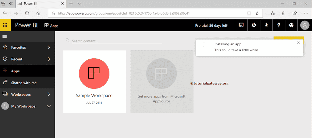 点击“获取应用”按钮可打开以下窗口。在这里,您可以选择要查看的已发布应用。我将选择“示例工作区”并点击“立即获取”。