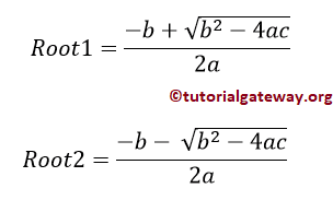 print("Two Distinct Real Roots Exists: root1 = %.2f and root2 = %.2f" %(root1, root2))