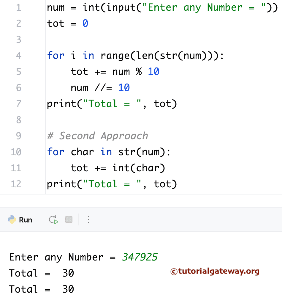 您也可以尝试下面所示的for 循环方法来计算各位数之和。