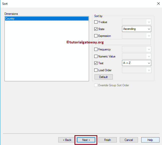 “雷达图排序”页面用于指定国家维度的排序顺序。在此示例中,我们将国家按升序排序。