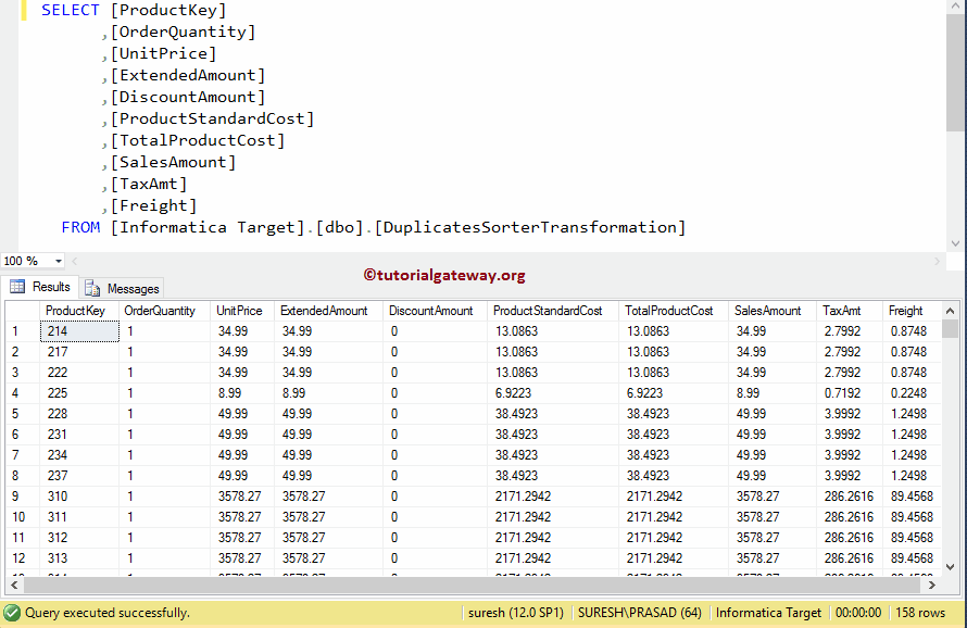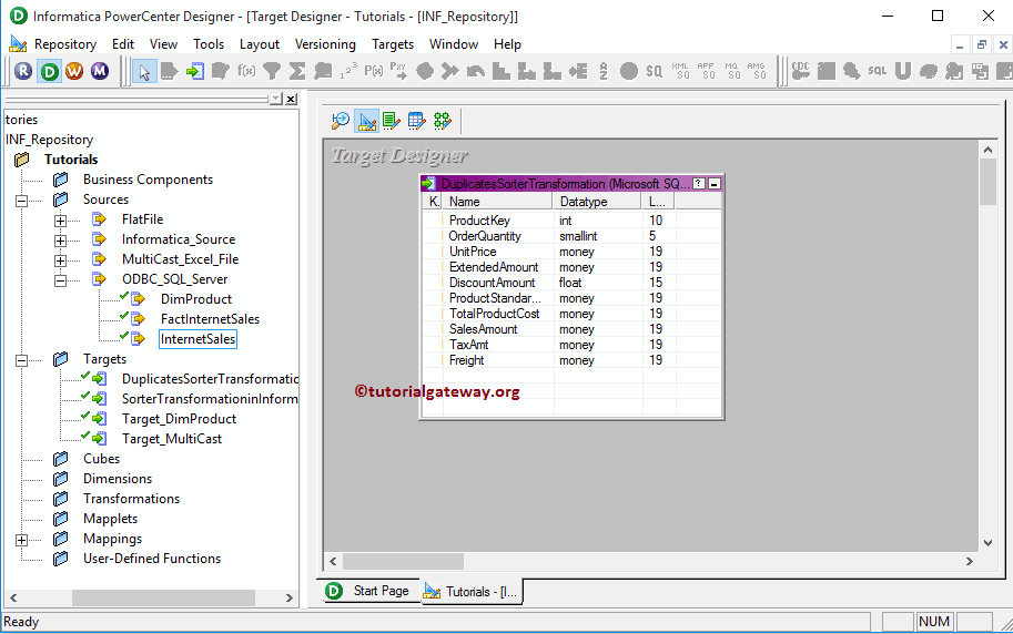在本文中,我们将通过一个例子讲解如何在Informatica中使用Sorter转换去除重复项。在这个例子中,我们将使用Adventure Works DW 2014中提供的Fact Internet Sales表数据。