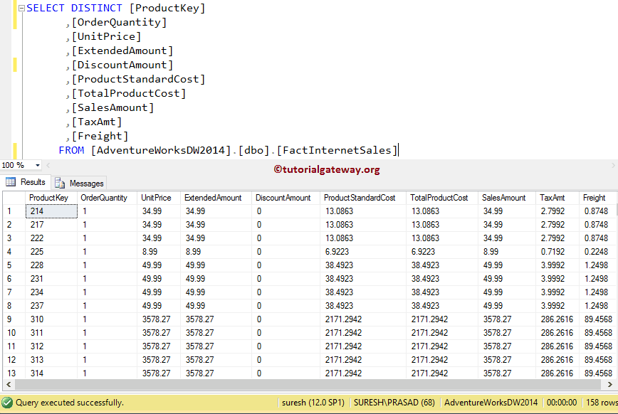 从上图可以看出,总共有60398条记录,但只有158条是不同的记录。让我们通过在SQL中编写Distinct查询来查看相同的内容。