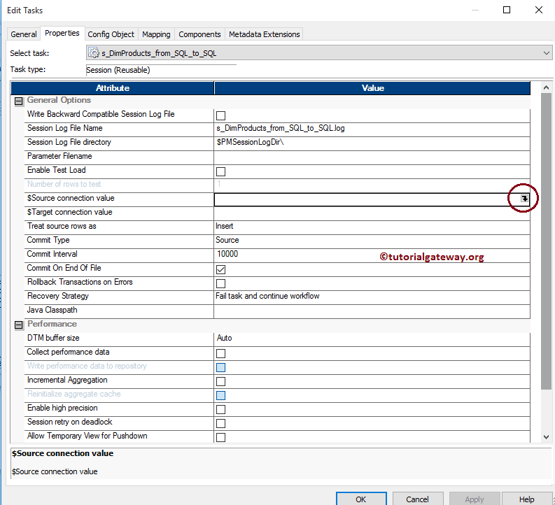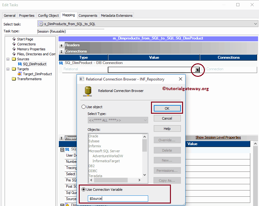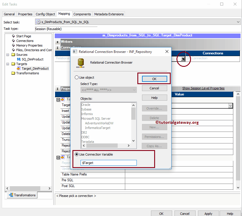 接下来,您需要为此 Informatica 可重用会话任务输入一个新名称。这里我们分配的名称是 s_DimProducts_from_SQL_to_SQL
